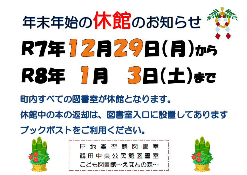12月は22日(月) 午後3時30分~ おはなしの部屋